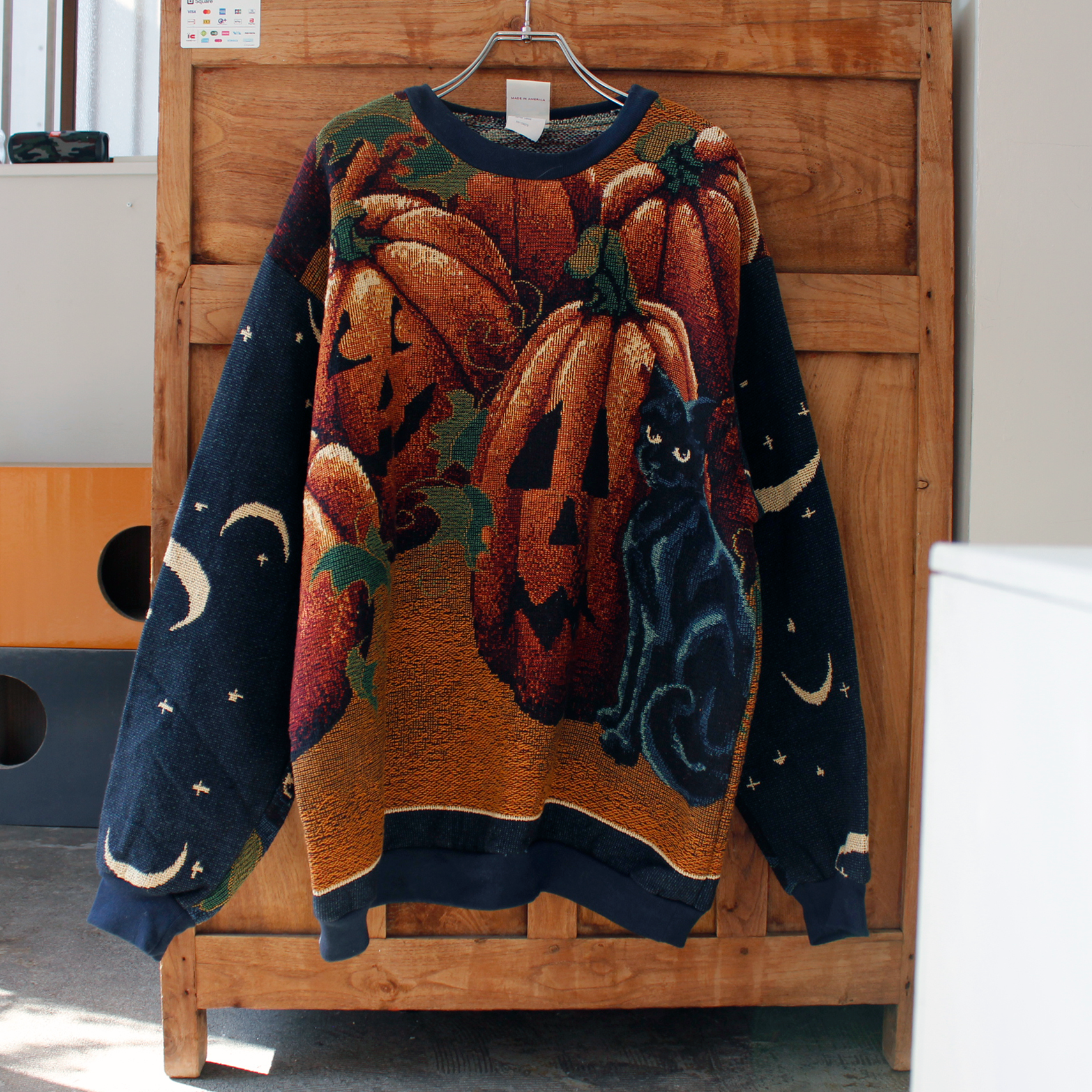 Pumpkin & Black Cat Sweater / Sugar Street Weavers / 90s