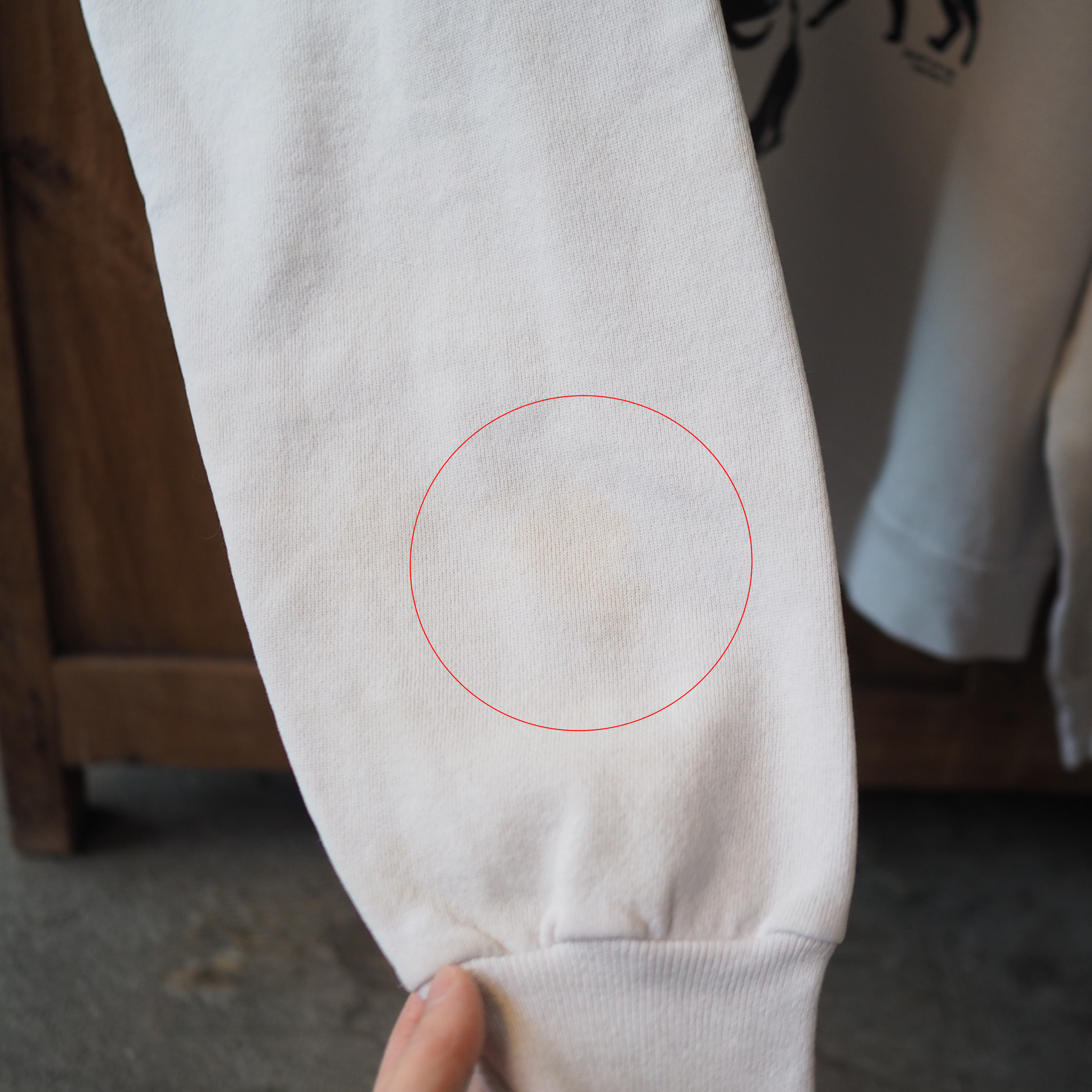 背面の左の腰あたりと両袖にペンキや擦れたようなシミがあります。