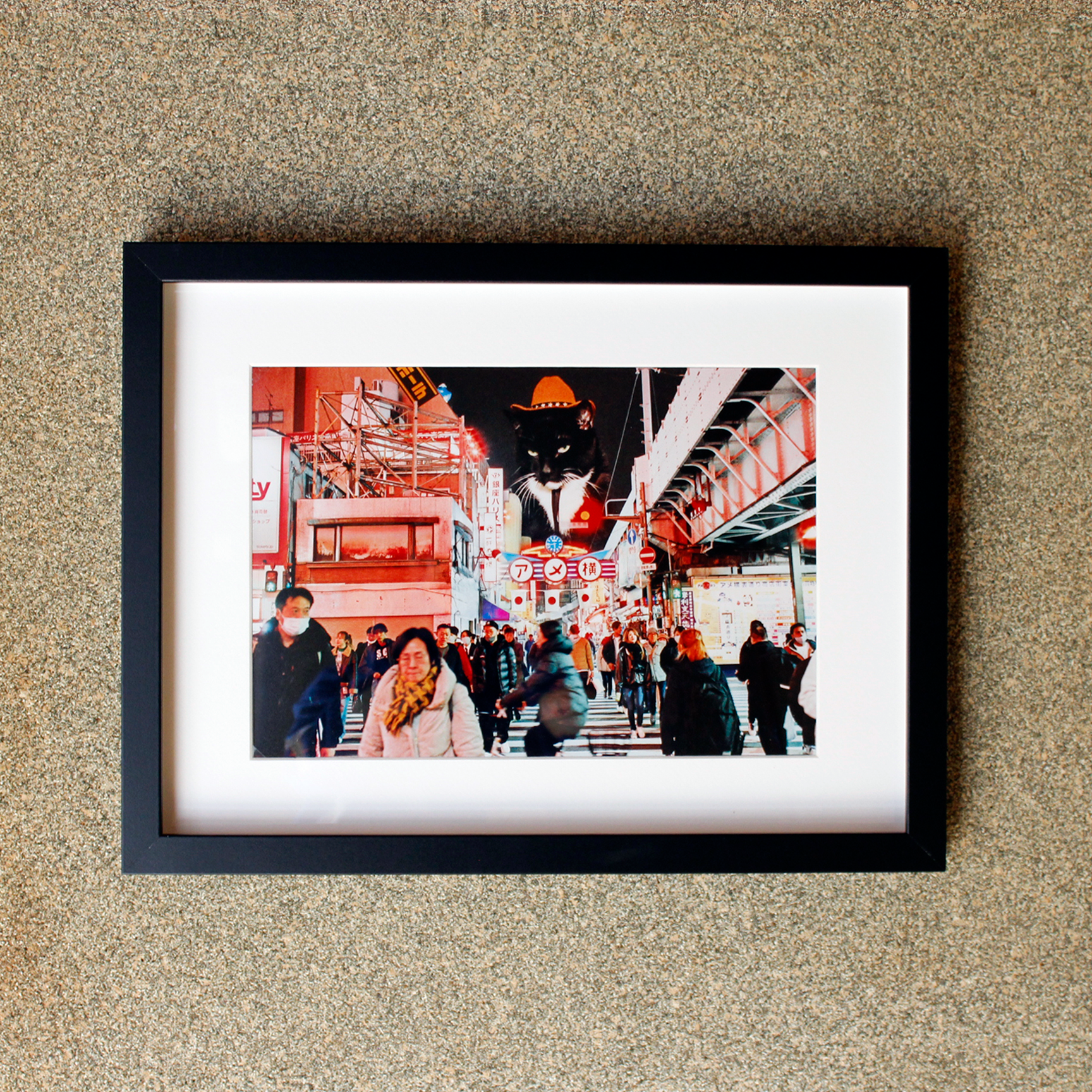 ネオンが輝く名所にドーンと降臨する、ネコ。